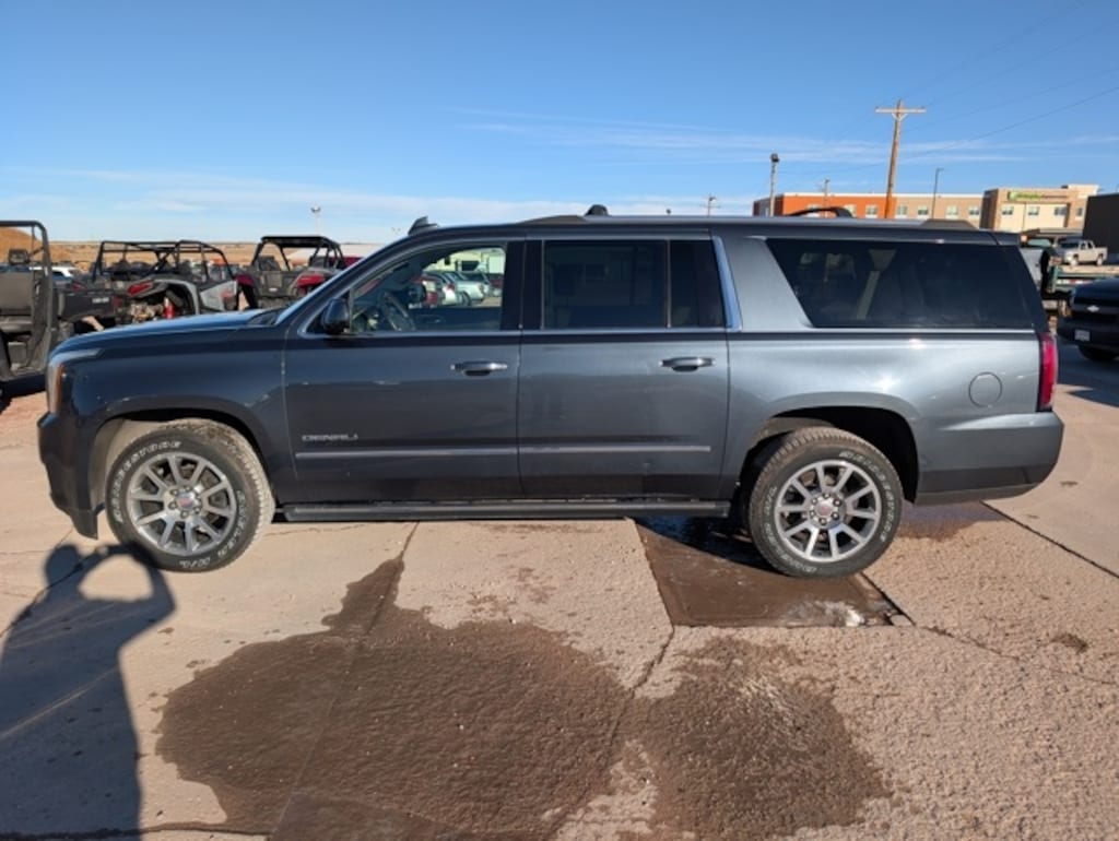 Features: 4WD, 10 Speakers, 3.23 Rear Axle Ratio, 3rd row seats: split-bench, 4-Wheel Antilock Disc Brakes, 4-Wheel Disc Brakes, 5 Auxiliary 12-volt Power Outlets, ABS brakes, Adaptive suspension, Adjustable pedals, Air Conditioning, All-Weather Floor Mats, Alloy wheels, AM/FM radio: SiriusXM, Apple CarPlay/Android Auto, Auto High-beam Headlights, Auto-dimming door mirrors, Auto-dimming Rear-View mirror, Auto-leveling suspension, Automatic Emergency Braking, Automatic temperature control, Black Assist Steps w/Chrome Strip, Black Roof Rack Cross Rails, Bodyside moldings, Bose Active Noise Cancellation, Bose Centerpoint Surround Sound Audio System, Brake assist, Bumpers: body-color, CD Player, CD player, Compass, Delay-off headlights, Driver door bin, Driver vanity mirror, Dual front impact airbags, Dual front side impact airbags, Electronic Stability Control, Emergency communication system: OnStar and GMC connected services capable, Enhanced Driver Alert Package, Exterior Parking Camera Rear, Forward Collision Alert, Front anti-roll bar, Front Bucket Seats, Front Center Armrest, Front dual zone A/C, Front fog lights, Front reading lights, Front wheel independent suspension, Full-Feature Reclining Bucket Seats, Fully automatic headlights, Garage door transmitter, Genuine wood console insert, Genuine wood dashboard insert, Genuine wood door panel insert, Hands Free Power Programmable Rear Liftgate, Heads-Up Display, Heated & Ventilated Driver & Front Passenger Seats, Heated door mirrors, Heated front seats, Heated Leather-Wrapped Steering Wheel, Heated rear seats, Heated steering wheel, High-Intensity Discharge Headlights, Illuminated entry, Inside Rear-View Auto-Dimming Mirror, Integrated Trailer Brake Controller, IntelliBeam Automatic High Beam On/Off, Lane Change Alert w/Side Blind Zone Alert, Lane Keep Assist w/Lane Departure Warning, Leather Shift Knob, Leather steering wheel, License Plate Front Mounting Package, Low tire pressure warning, Magnetic Ride Control Suspension Package, Memory Package, Memory seat, Navigation System, Occupant sensing airbag, Outside temperature display, Overhead airbag, Overhead console, Panic alarm, Passenger door bin, Passenger vanity mirror, Passive Entry System, Pedal memory, Perforated Leather-Appointed Seat Trim, Power door mirrors, Power driver seat, Power Liftgate, Power passenger seat, Power Release 2nd Row Bucket Seats, Power steering, Power Tilt & Telescopic Steering Column, Power windows, Power-Adjustable Pedals For Accelerator & Brake, Preferred Equipment Group 5SA, Premium audio system: IntelliLink, Push Button Keyless Start, Pwr Retractable Assist Steps w/Perimeter Lighting, Radio: AM/FM/SiriusXM w/Navigation, Rain sensing wipers, Rear air conditioning, Rear anti-roll bar, Rear Cross Traffic Alert, Rear reading lights, Rear window defroster, Rear window wiper, Remote Keyless Entry, Remote keyless entry, Roof rack: rails only, Security system, SiriusXM NavTraffic, SiriusXM Radio, Speed control, Speed-sensing steering, Split folding rear seat, Spoiler, Steering wheel memory, Steering wheel mounted audio controls, Tachometer, Telescoping steering wheel, Tilt steering wheel, Traction control, Trip computer, Turn signal indicator mirrors, Universal Home Remote, Variably intermittent wipers, Ventilated front seats, Voltmeter, Wheels: 20" x 9" Bright Machined Aluminum, Wireless Charging, 4WD.